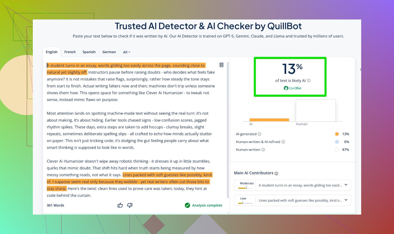Precies dat middengebied is waar AI-detectors vaak gaan schreeuwen “AI!” omdat de zinnen te netjes en gebalanceerd worden. Dus als een humanizer deze stijl aankan en toch goed scoort, is dat interessant.
