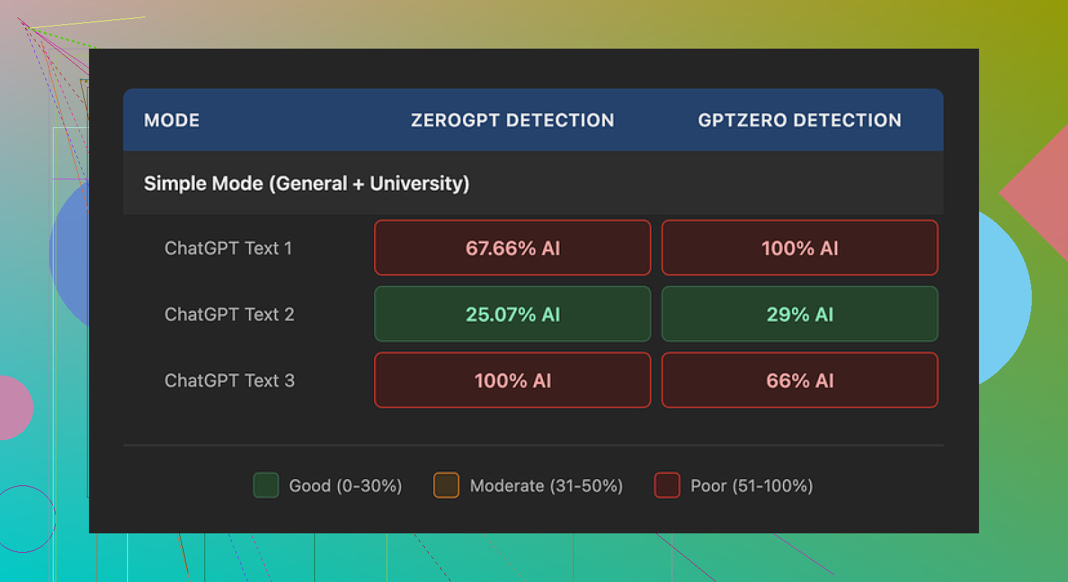 - Wie jedes Humanizer-Tool kann es nicht ehrlich garantieren, dass du allen Detektoren entgehst, vor allem wenn Institutionen ihre Strategien ändern