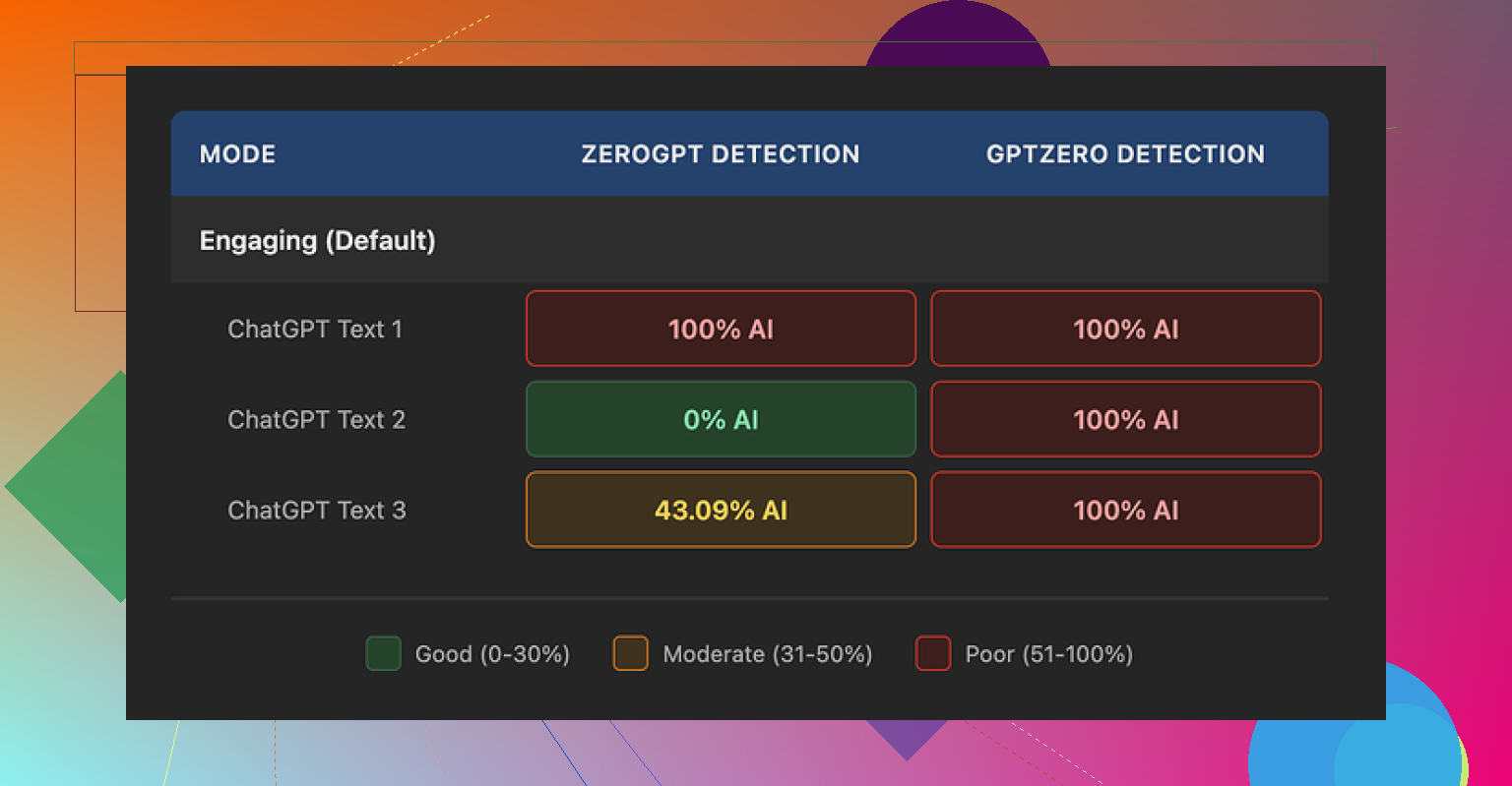- GPTZero tagged every single humanized sample as 100% AI-generated.